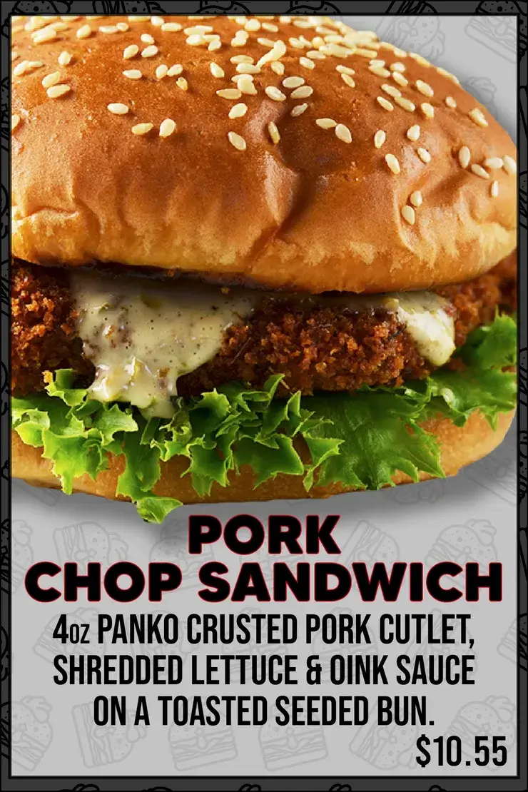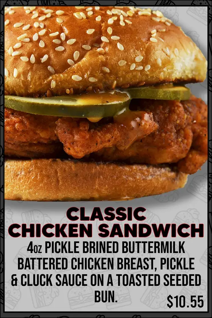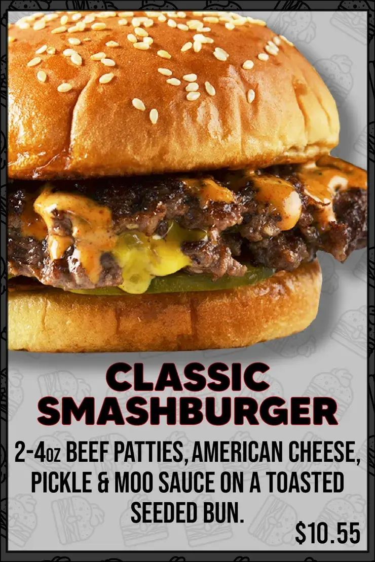 At Cluck Cluck Moo Moo, weâre flipping Buffaloâs burger game with fresh, never-frozen smash burgers, crispy hot chicken sandwiches, and juicy porkchop sandwiches that pack serious flavor. Every bite is made to order using premium ingredients, seasoned perfectly, and served with our signature Moo-Tine Fries and house-made sauces.