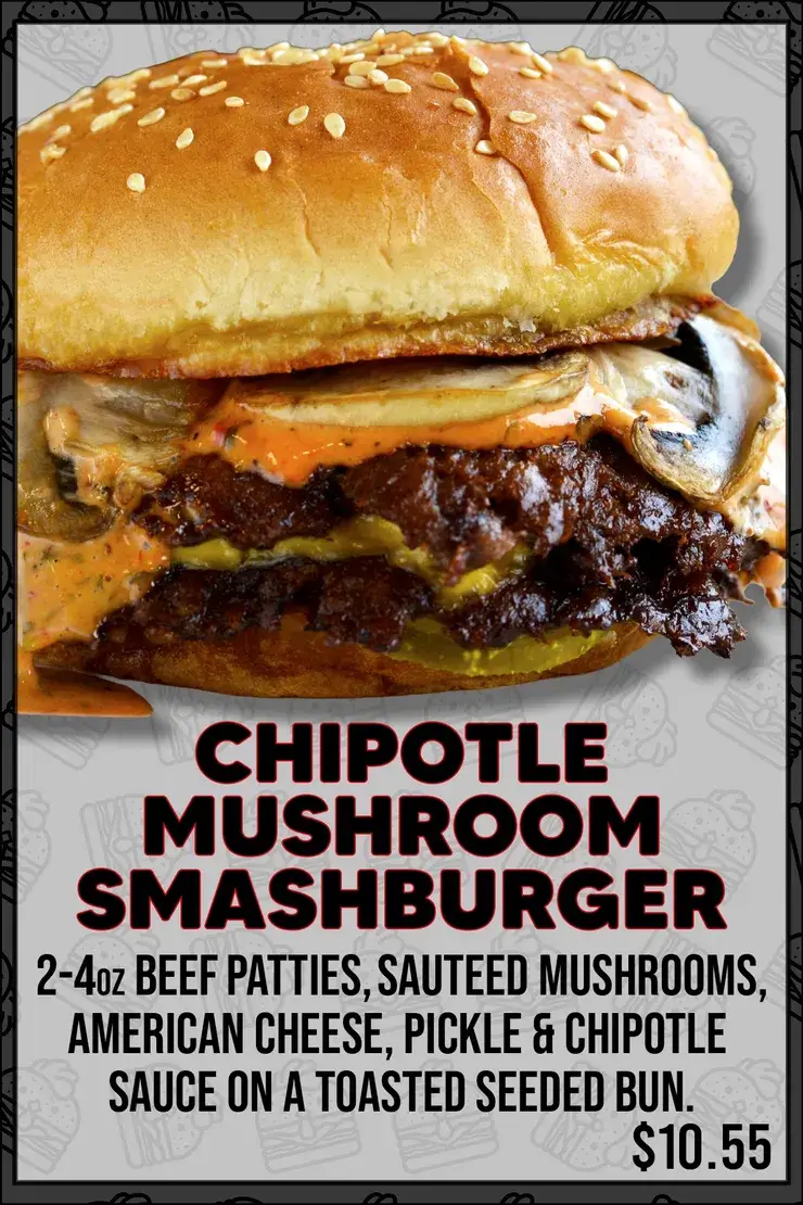 Our smashburgers and chicken sandwiches are made fresh to order, seared or fried to perfection, and packed with bold flavor in every bite.